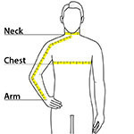 | Neck | 16 3/4 | 17 1/4 | 17 3/4 | 18 3/4 | 19 3/4 | 20 3/4 | 21 3/4 |